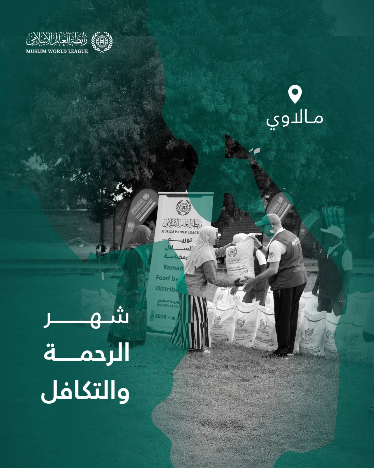 شهرُ الرحمة والتكافل:تواصل رابطة العالم الإسلامي إيصال السلال الرمضانية إلى الفئات المحتاجة حول العالم، وهنا قوافل الصِّلة في جمهورية مالاوي: